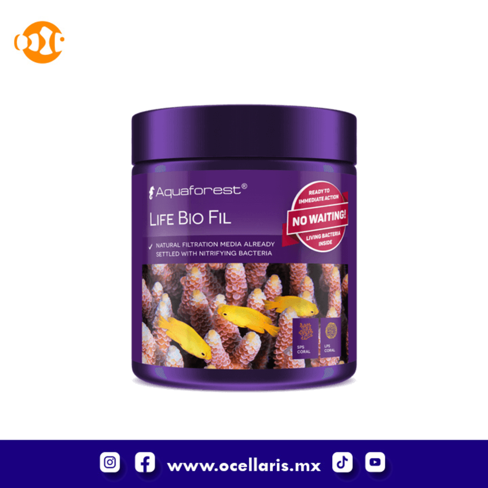 Aquaforest Life Bio Fil es un medio de filtración biológica natural que ha sido presembrado con cepas bacterianas cuidadosamente seleccionadas que iniciarán y apoyarán el proceso de nitrificación tanto en tanques nuevos como establecidos.